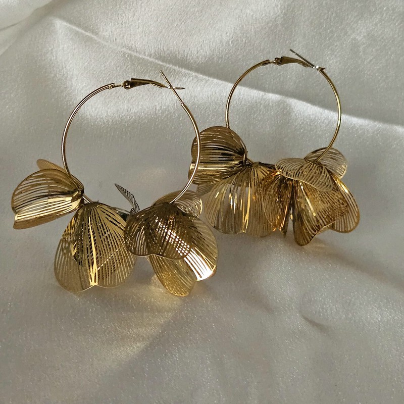 Boucles Fleur d'Or – Créoles Dorées (7 cm) Élégantes et modernes, ces boucles d'oreilles créoles en acier inoxydable doré apportent une touche florale et raffinée. Leur design torsadé, enveloppé de fleurs délicates, crée un effet lumineux et délicat. Avec une longueur de 7 cm, elles sont parfaites pour sublimer votre look au quotidien ou lors d'occasions spéciales. Légères et confortables, elles ajoutent une touche d'élégance à chaque mouvement.
