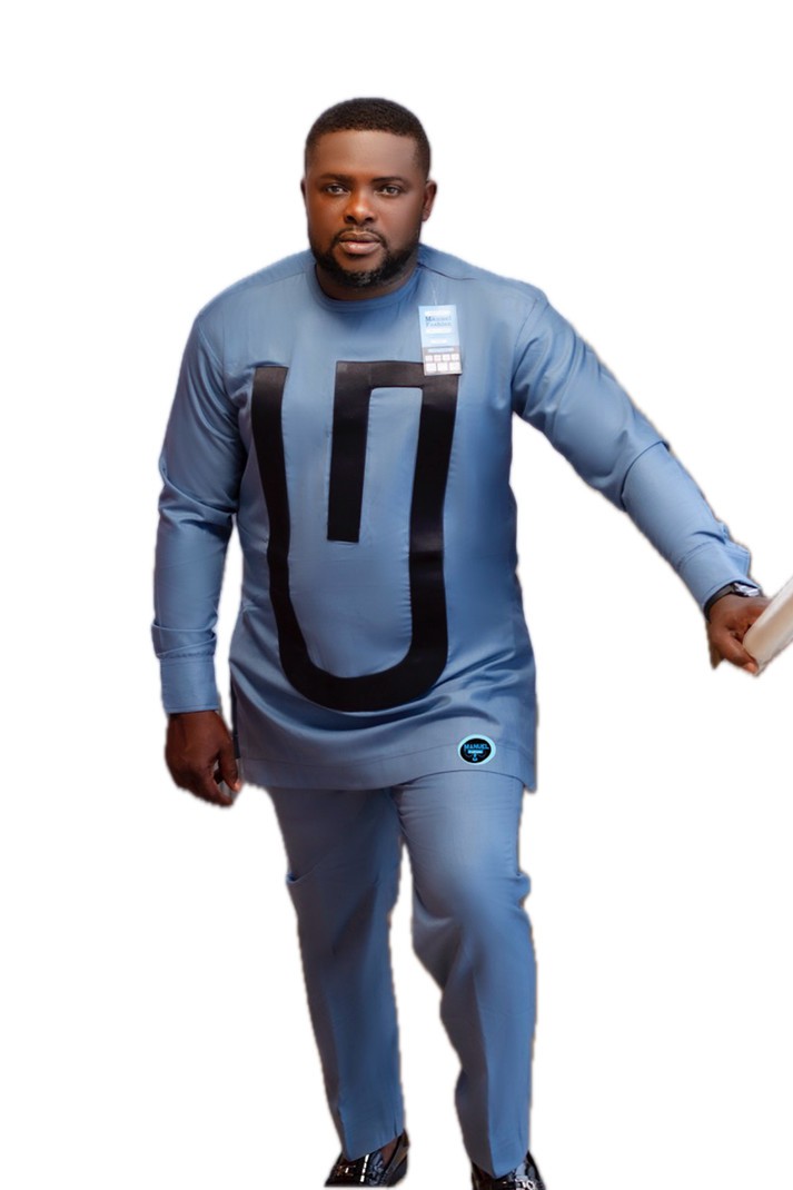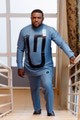Elevate your wardrobe with the Manuel Fashion Blue Kaftan with Black Accent! This stylish outfit features a blue kaftan with a bold black U-shaped accent and a modern tag detail, paired with matching slim-fit trousers. The long-sleeve design and lightweight, breathable fabric offer a comfortable yet chic look, perfect for cultural events, casual outings, or formal occasions. Crafted for sophistication and versatility, this set ensures a striking and contemporary appearance.