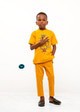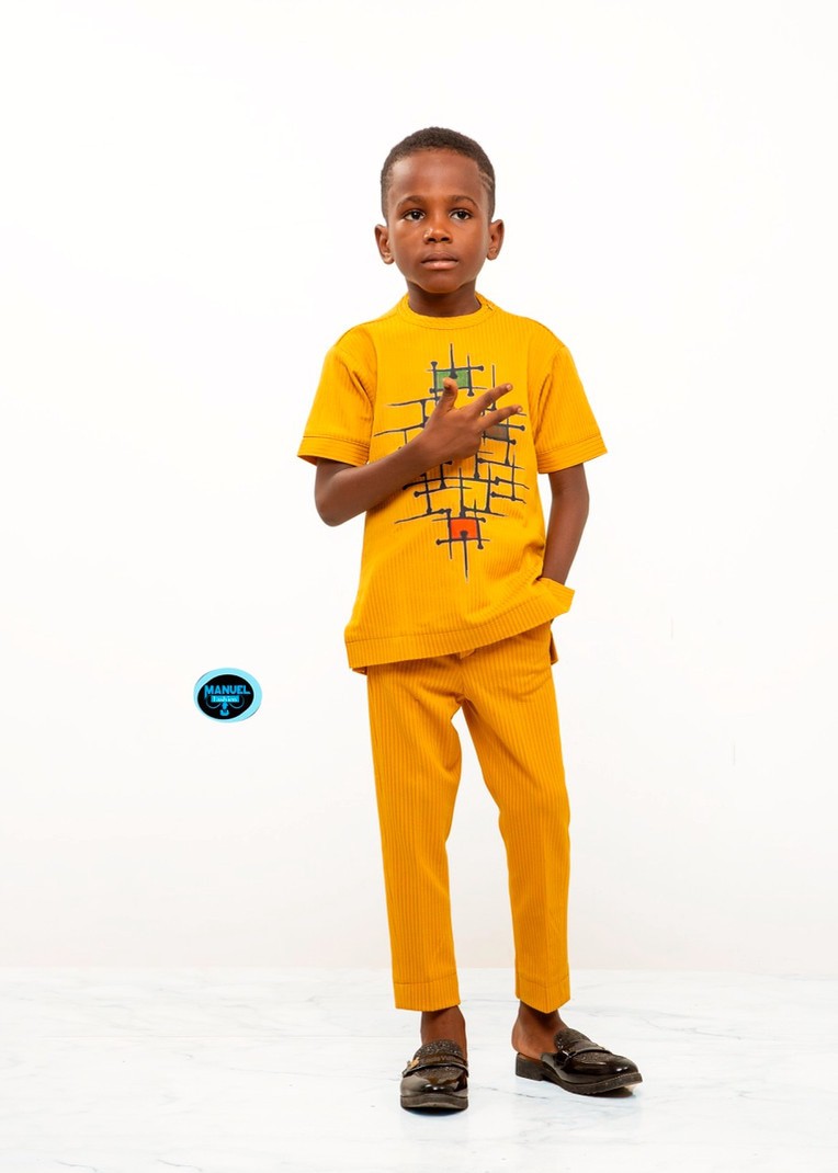 Brighten your child’s wardrobe with the Manuel Fashion Mustard Modern Tunic Set! This stylish ensemble features a mustard yellow tunic with a bold geometric print in black, red, and green, paired with matching slim-fit trousers. The short-sleeve design and ribbed texture add a contemporary twist, making it perfect for cultural events, family gatherings, or casual outings. Crafted for comfort and flair, this set ensures your little one stands out while staying comfortable all day.