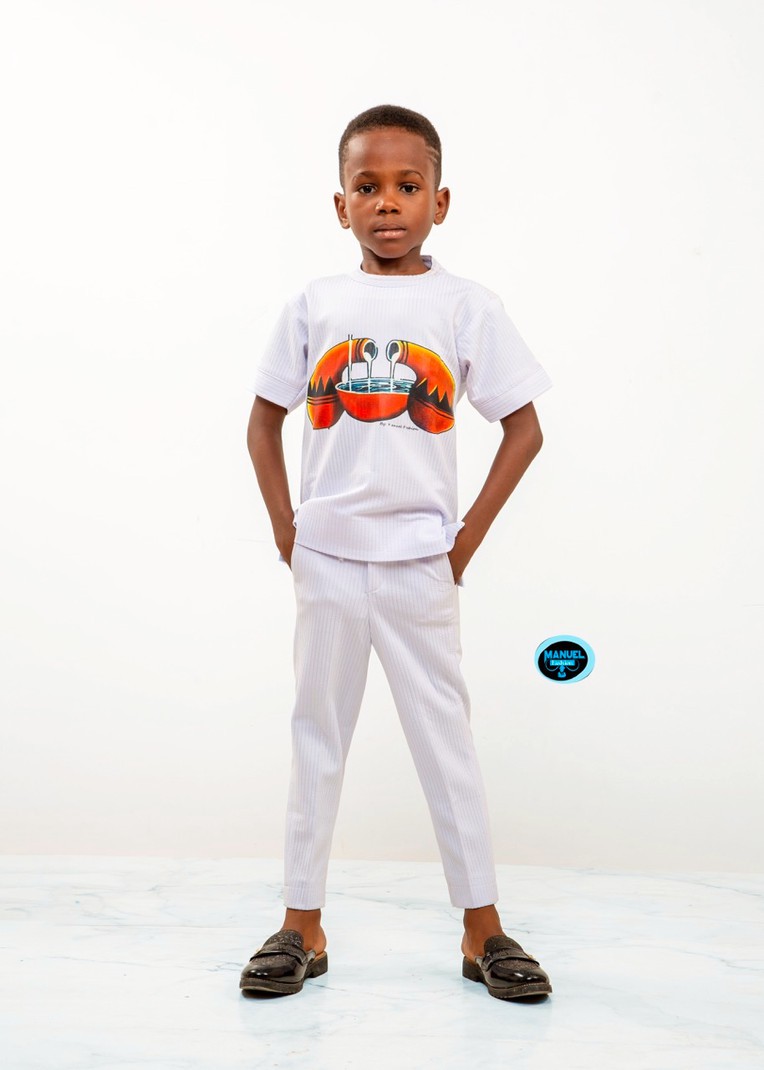 Get your child ready for adventure with the Manuel Fashion White Safari Tunic Set! This stylish outfit features a white tunic with a vibrant orange and black safari animal print, paired with matching slim-fit trousers. The short-sleeve design and ribbed texture offer a modern twist, making it perfect for cultural events, casual outings, or family gatherings. Designed for comfort and flair, this set ensures your little one looks bold and stays comfortable all day.