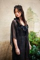 La tunique est en voilage transparent avec des volants au niveau du col et peut se porter ouverte ou fermée avec un bouton.