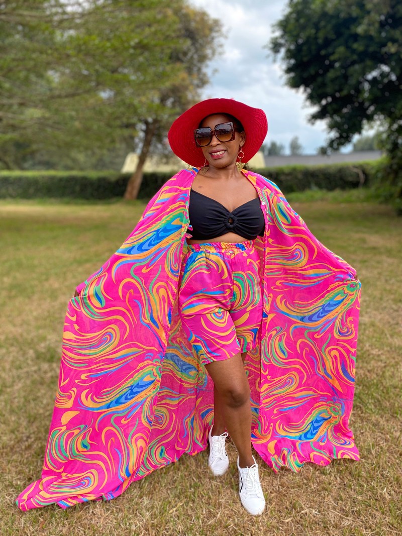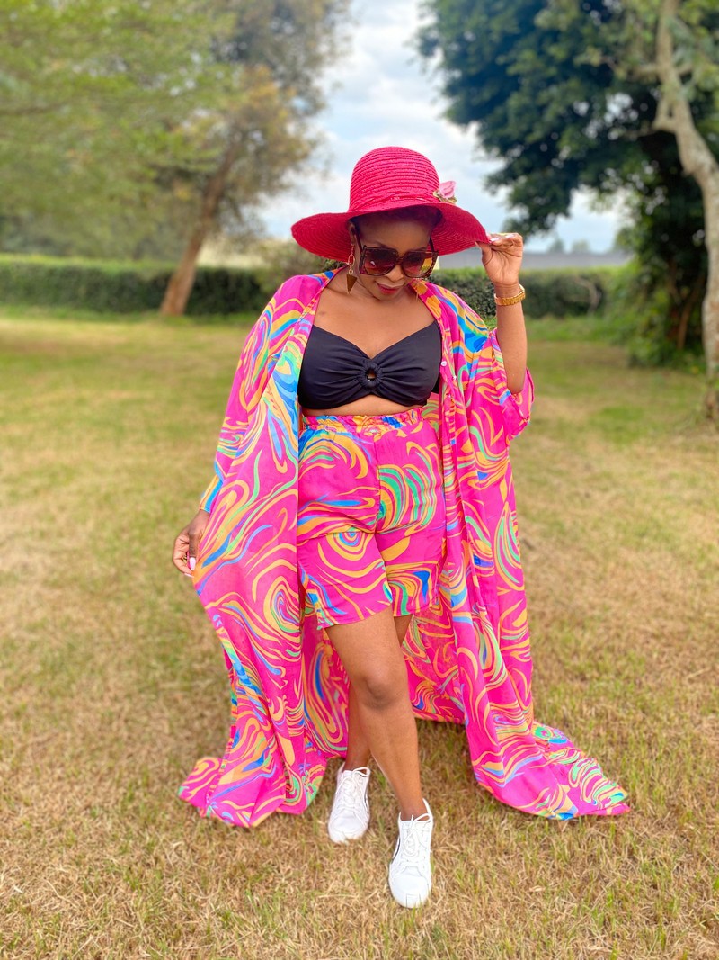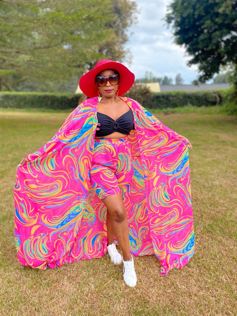 Embrace the Summer vibes with the stunning maridadi chiffon kimono and shorts set.