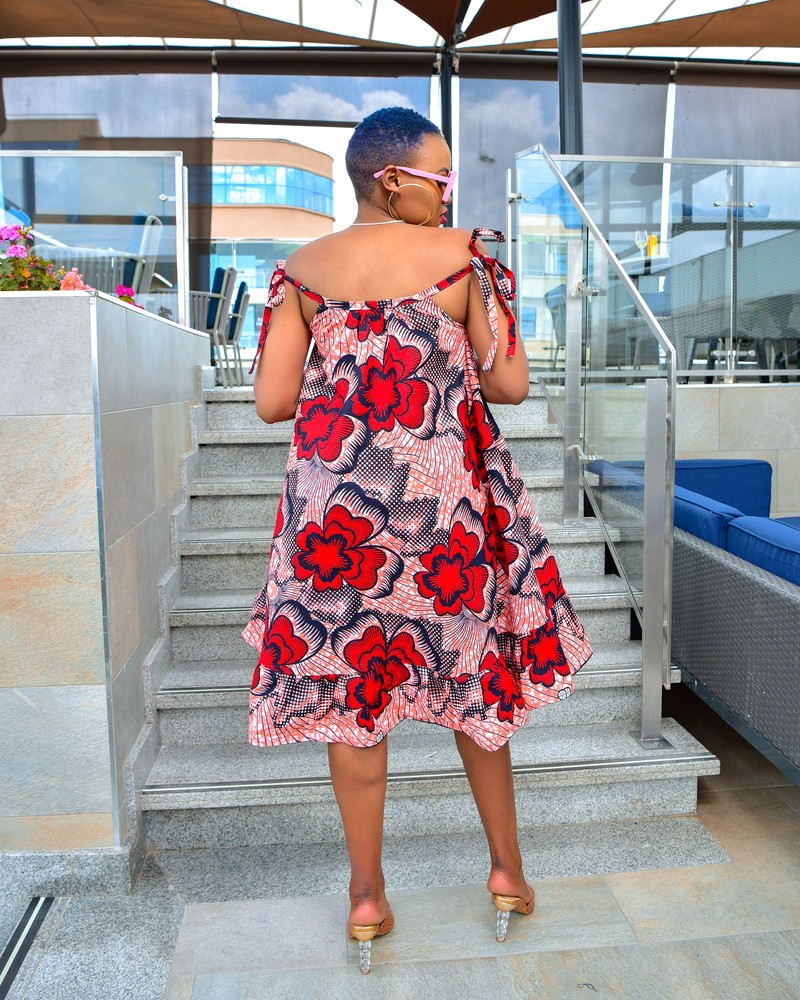 The dress is made in Kenya 🇰🇪 using locally sourced Ankara fabrics and can be styled as a Sundress with some flat shoes to the beach or when running errands.