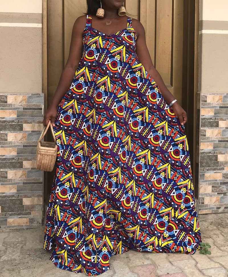 Women Dresses Long dresses name_en: Loose name_en: Multicolour name_en: For Her name_en: Ankara name_en: Cotton