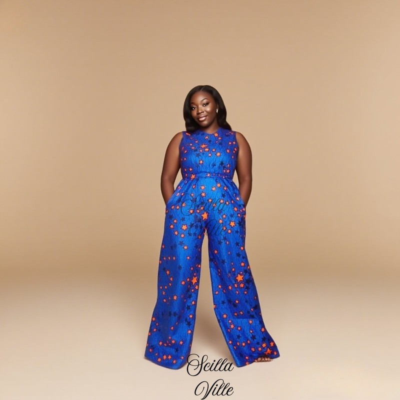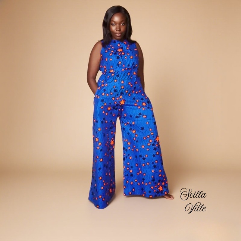 Wide leg maxi jumpsuit made with quality Ankara fabric.