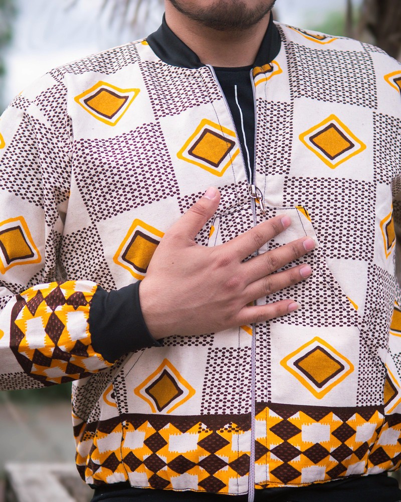 La veste bombers en tissu Woodin allie parfaitement modernité urbaine et élégance africaine. Conçue dans une coupe courte et ajustée, elle s'inspire du style aviateur classique tout en mettant en valeur la richesse et la vivacité des motifs africains.