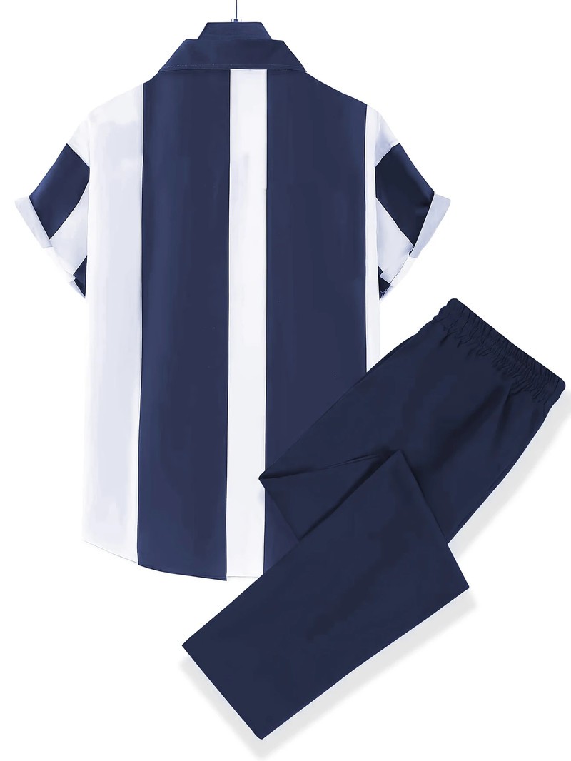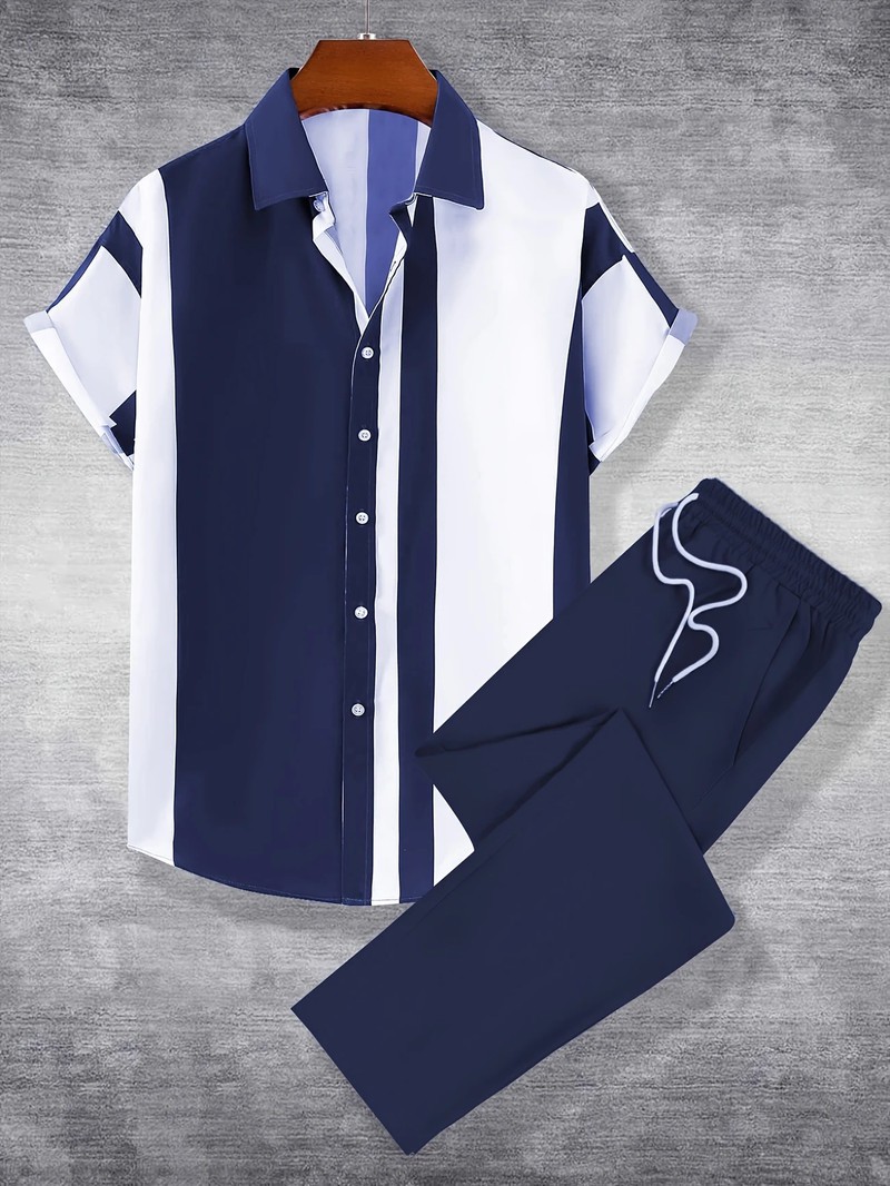 Men's Casual Collar Short Sleeve Shirt and Straight Pants Suit