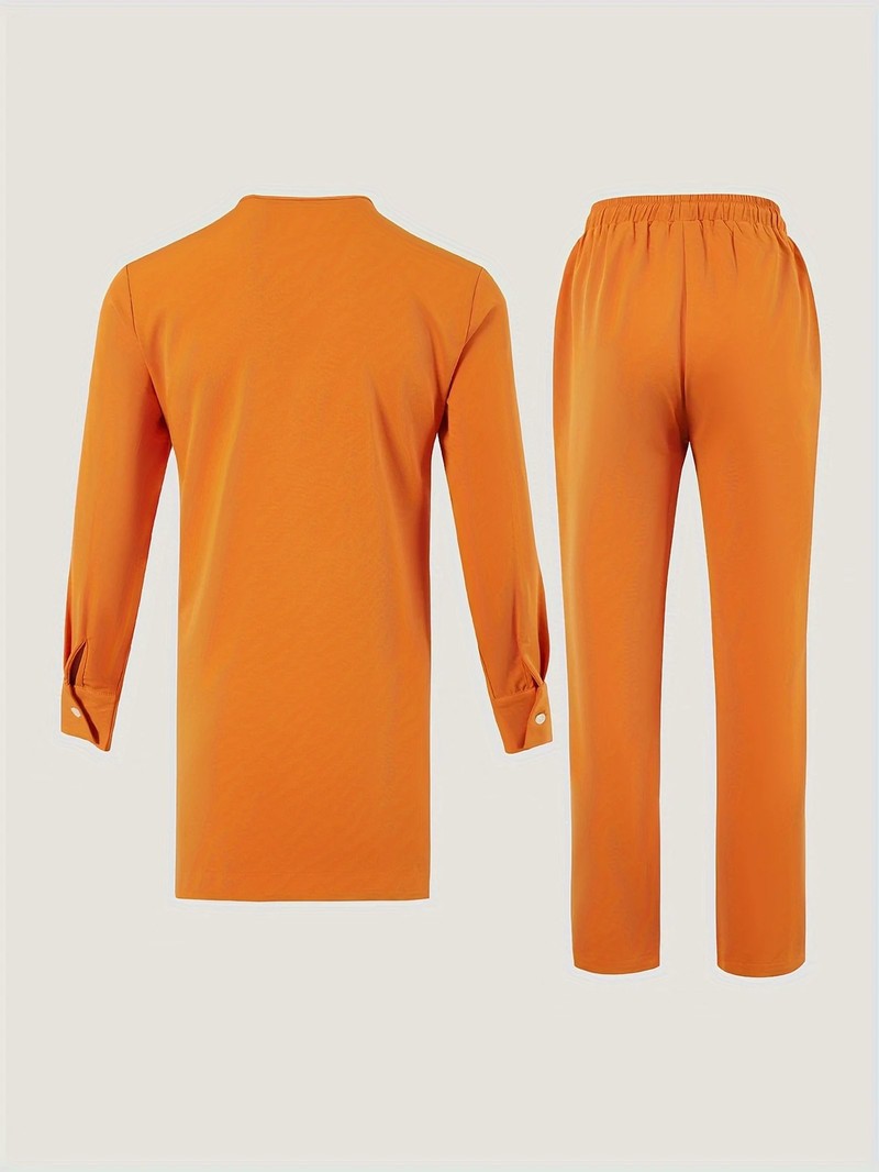 Men's African Dashiki Suit, Long Sleeve, Round Neck, Button, Split Hem, Elastic Pants, African Clothing, Large Size Men's Suit, Men's Casual Shirt and Trousers 2pcs Set, New Four Seasons 1 Set, Street Style, Party, Wedding Outfit, Orange