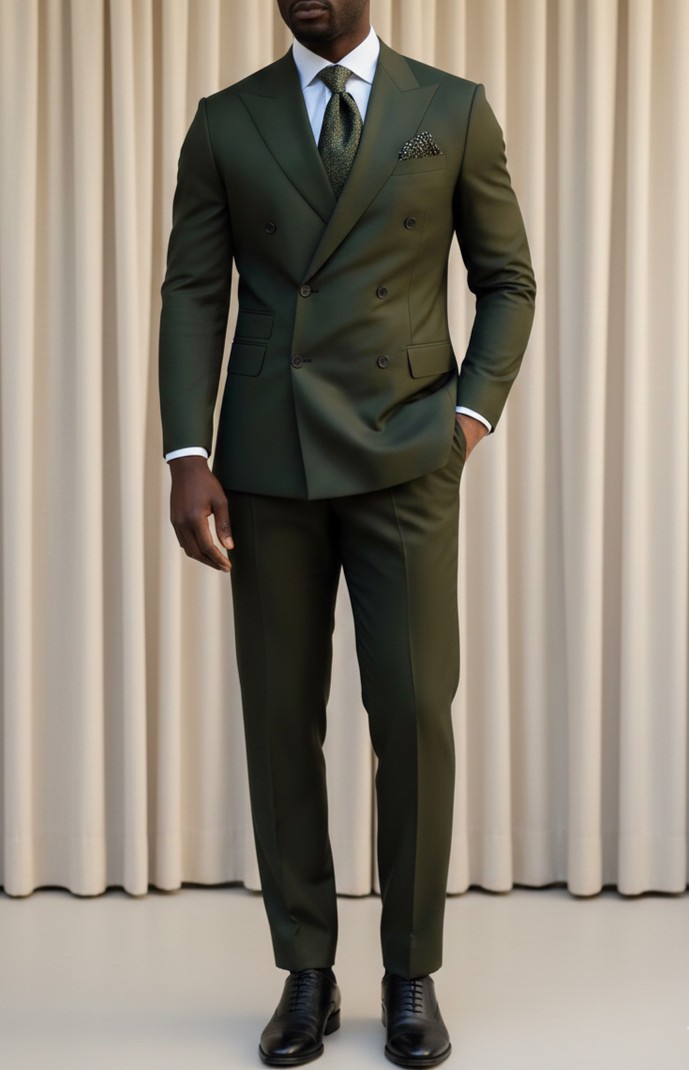 Elevate your formal style with our Men’s Dark Green Double-Breasted Suit, perfect for weddings, engagements, proms, grooms, groomsmen, and elegant everyday wear. This modern-classic two-piece suit is crafted from premium-quality fabric and imported materials, offering a refined look with long-lasting structure and comfort.