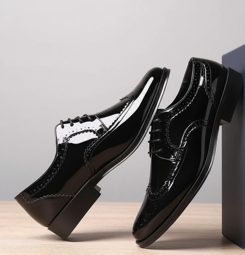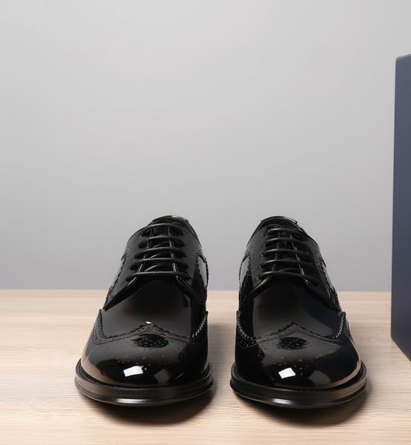 Design Style: Cap-Toe Oxford. The traditional closed lacing system creates a sleek, formal fit. The distinguishing Cap-Toe seam is finished with delicate Brogue Perforation (small decorative carving details), adding a touch of traditional character.