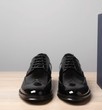 Sole: Features a Durable Leather Sole with a stacked leather heel, providing a refined profile that signifies high-quality construction suitable for professional environments.