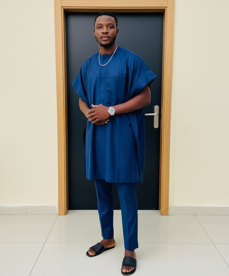 Navy Blue Men’s Kaftan Outfit | Tailored Danshiki | Custom Size Available