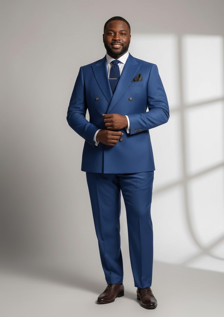 Elevate your style with this Men’s Sage royal blue Double-Breasted Suit, perfect for grooms, groomsmen, wedding engagements, prom, and other formal occasions. Designed with a modern yet timeless silhouette, this two-piece suit delivers elegance, comfort, and durability making it an ideal choice for your big day or any special event.