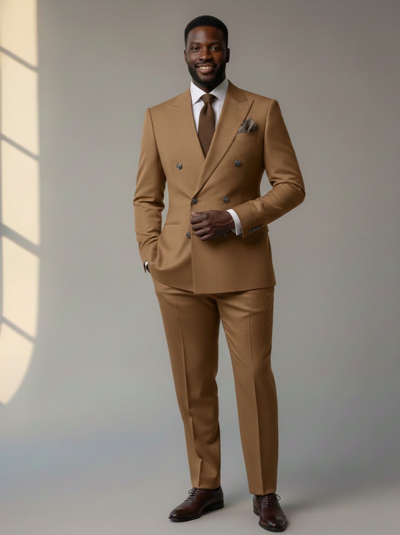 Elevate your style with this Men’s Sage Tan Double-Breasted Suit, perfect for grooms, groomsmen, wedding engagements, prom, and other formal occasions. Designed with a modern yet timeless silhouette, this two-piece suit delivers elegance, comfort, and durability making it an ideal choice for your big day or any special event.