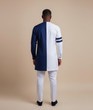 Upgrade your wardrobe with this stylish two-tone men’s senator outfit in white and navy blue. Designed with a modern color-block top and slim-fit trousers, this premium African men’s wear is perfect for weddings, parties, church, and formal events. Made with high-quality fabric and available in custom sizing for the perfect fit. Shop now for elegant, comfortable, and fashionable traditional men’s clothing.