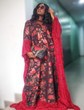 Stunning and elegant aptly describe this piece. It is delicately handmade from a rare, luxury fabric that looks like a combination of satin and brocade. The floral pattern shimmers.