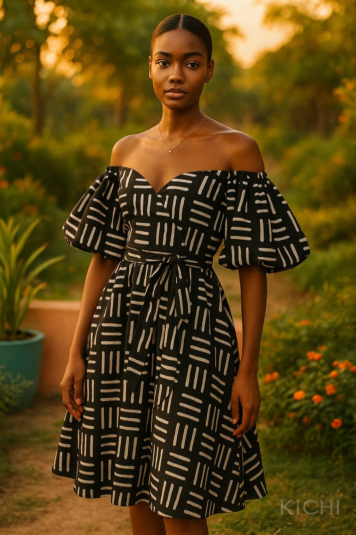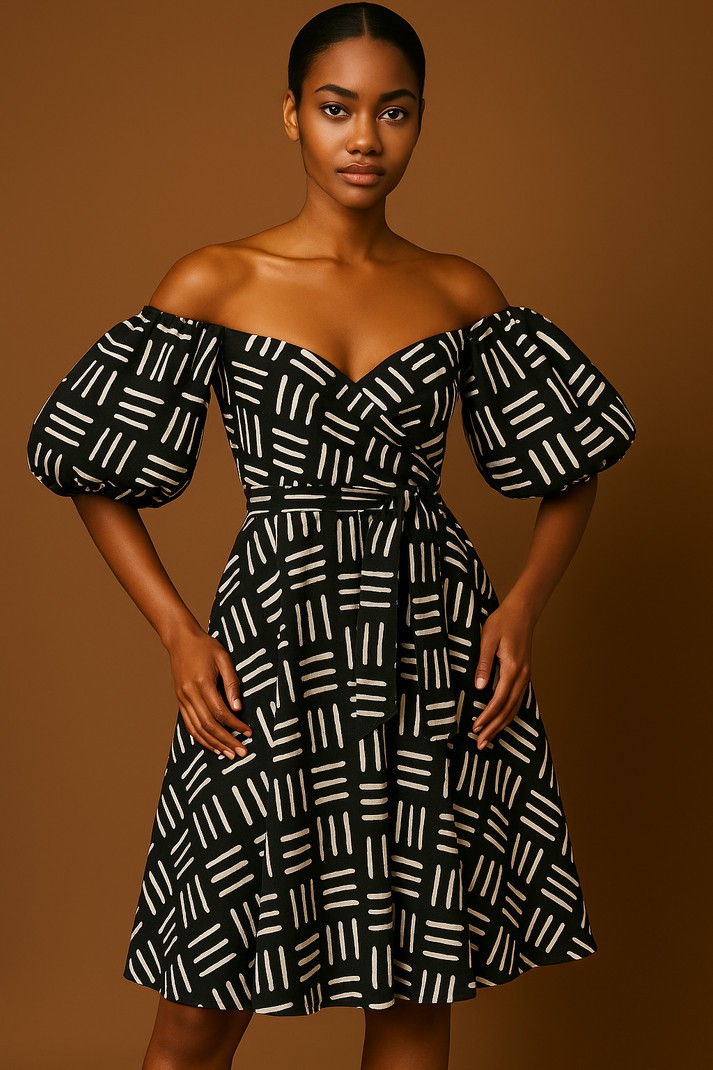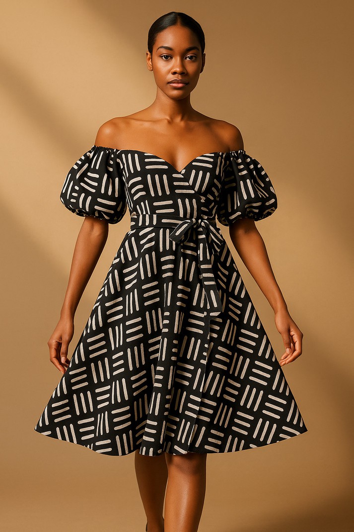 Women Dresses Mid-length Dresses Fit: Flared Color: Black Gender: For Her Material: Ankara