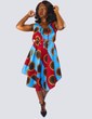 Women Dresses Mid-length Dresses Fit: Flared Color: Blue Gender: For Her Material: Ankara