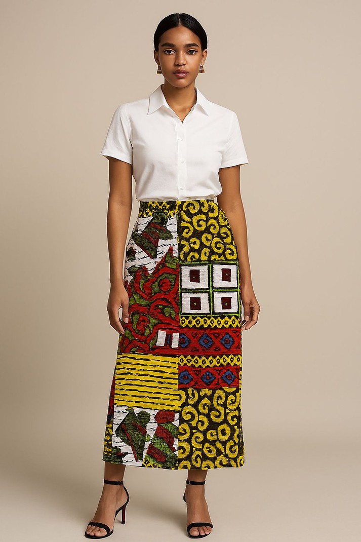 Women Skirts Midi skirts name_en: Straight name_en: Yellow name_en: For Her name_en: Ankara
