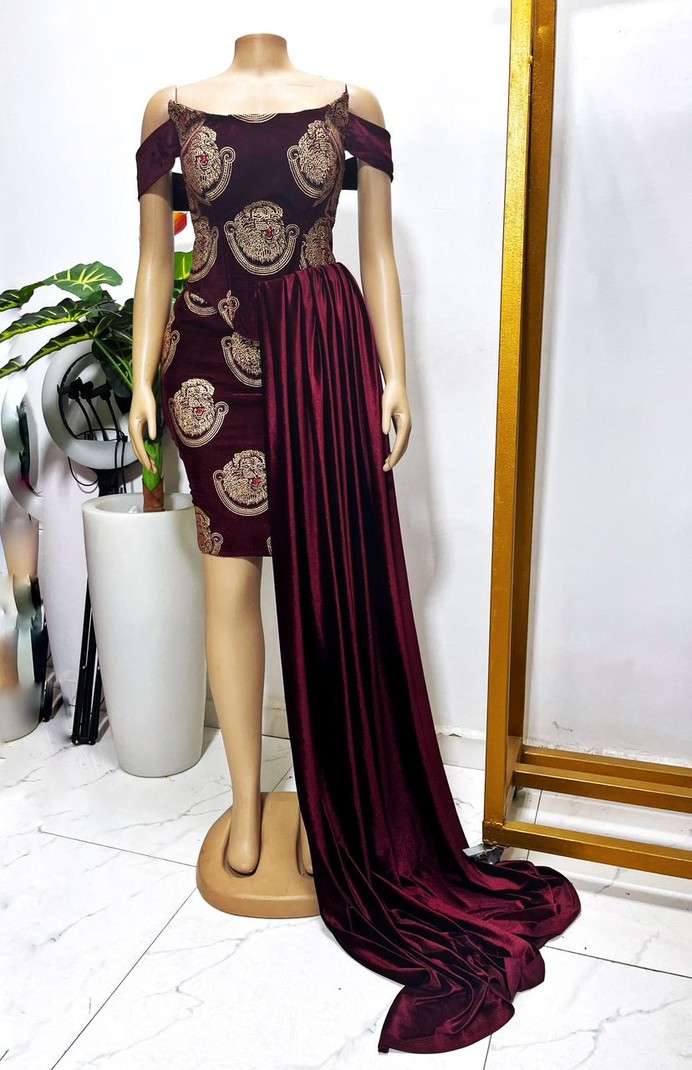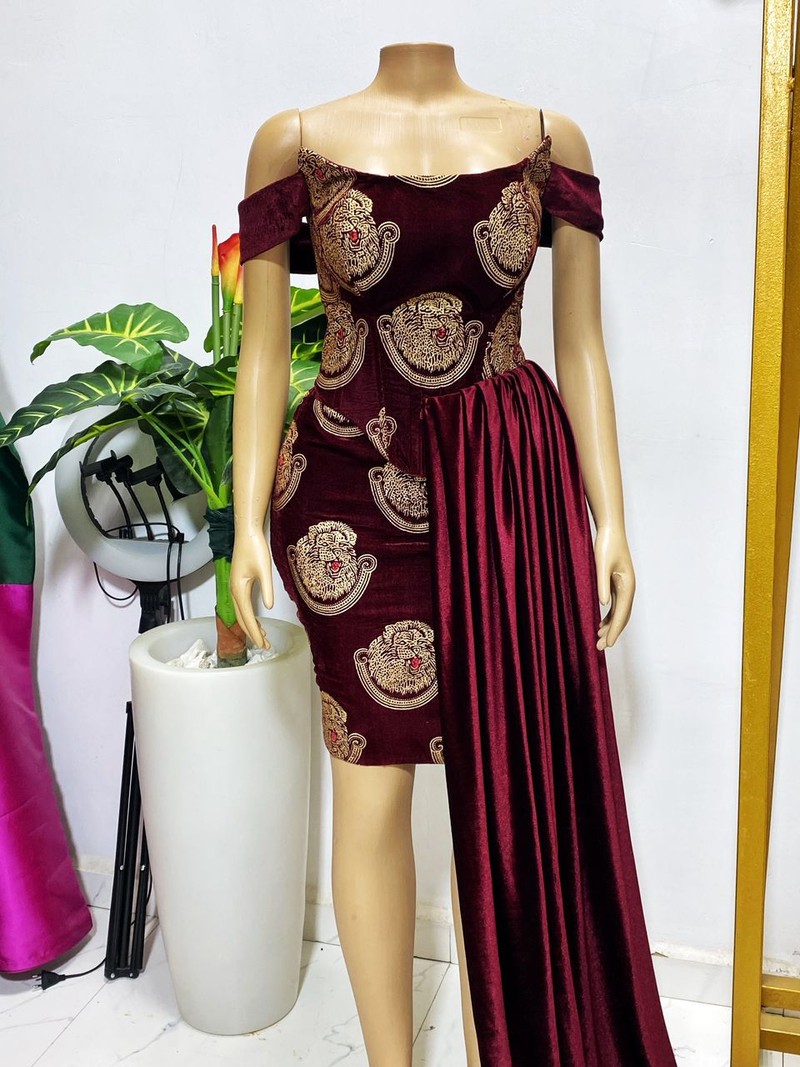 Women Dresses Mid-length Dresses name_en: Pencil name_en: Burgundy name_en: For Her name_en: Velvet