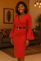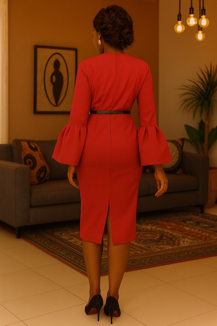This minimalist red dress features elegant bell sleeves and a flattering faux wrap design that enhances your silhouette. Its pencil midi length offers a sophisticated look perfect for both work and special occasions. Comfortable and stylish, it’s an ideal choice to boost your confidence and make a lasting impression.