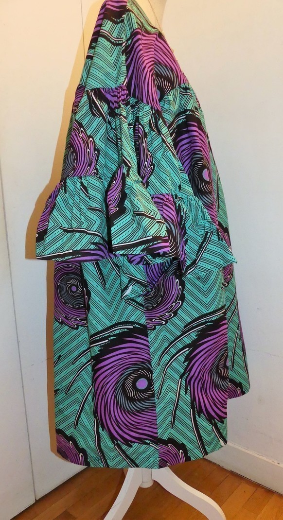 Beautiful loose dress for sizes from 40 to 54 - Length 110 cm - Width 91 cm X 2 - Double inset front and back. - Frilled on the chest and lower back - Round neckline in front and behind. - 2 inside pockets on the sides - Original sleeves. - Ideal dress for pregnant women, large sizes and small sizes from 40 - Scope with accessories, this is the perfect dress for a ceremony (wedding, baptism etc ... - 100% cotton fabric - Fabric purchased in Benin (West Africa) - Hand wash or machine 30 degrees
