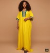 Brighten any room with this radiant, floor-length kaftan. Crafted in a cheerful sunny yellow fabric with a soft drape, this piece is an instant mood-booster. It features the striking multi-colored Handwoven aso-oke stripe trim on the V-neckline and the wide sleeve cuffs, providing beautiful cultural contrast to the vibrant solid yellow. The relaxed fit ensures comfort and movement.