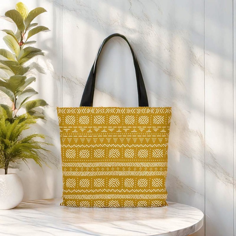Conquer the world with our Mud Cloth African American Totes! Featuring a bold minimalist gold print, these totes offer both style and functionality with their large capacity. Embrace your adventurous spirit and stand out with this unique accessory.