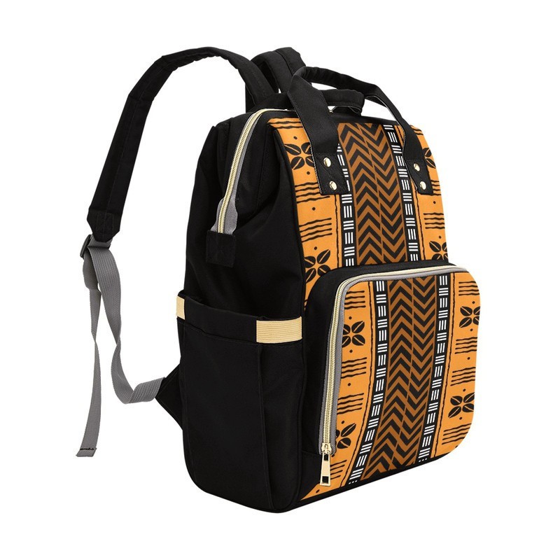 Embrace your adventurous spirit with our Mud Cloth Cowrie Tribal Diaper Bag! This African backpack is not only a stylish accessory but also a functional diaper bag. Featuring authentic Mud Cloth and Cowrie shell detailing, this bag will inspire your inner fashionista and make parenting feel like an adventure. Product Description * Made from high-grade nylon, lightweight yet sturdy. * Wide open design, large interior with 1 zippered pocket and 4 elastic pockets. * One front section with 3 elastic pockets and 1 net pocket for milk bottles and other items. * Padded back panel and adjustable shoulder straps for ultra comfort and stability. * Unisex design makes the diaper bag a nice choice for both mom and dad. Delivery Time This item will be processed within 3-7 business days (Excluding Weekends and Holidays). Once products ships it can take up to 15 Business days depending on your location. Out of Stock items can be requested by emailing us at [email protected] Care Instructions Machine wash cold inside out. Gentle cycle with mild detergent and like colors. Do not use bleach or fabric softener. Do not tumble dry. Hang to dry to ensure maximum shelf life. Iron inside out if necessary. Do not iron the print. Do not dry clean.