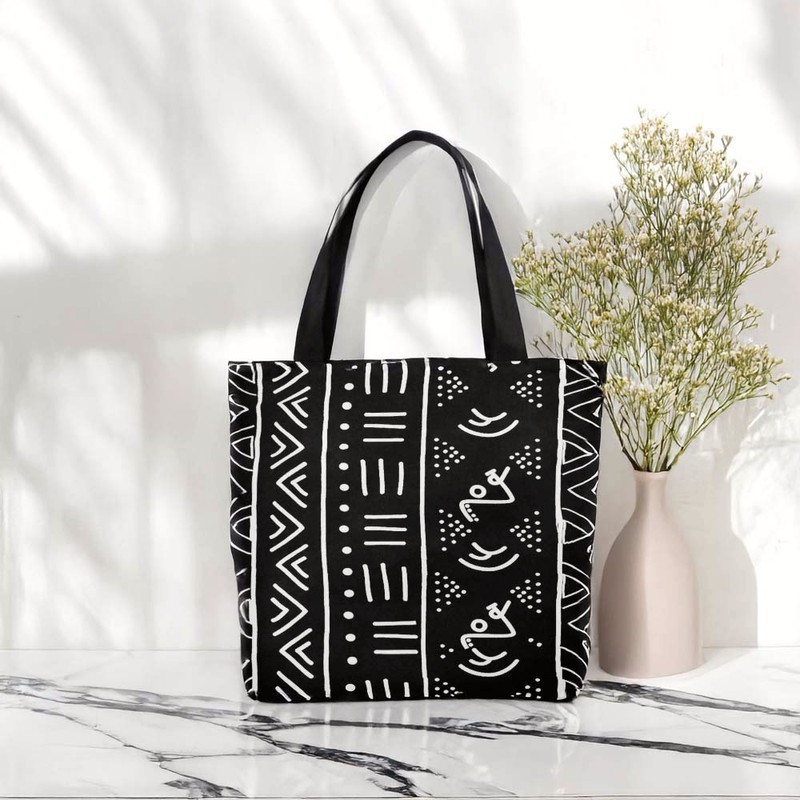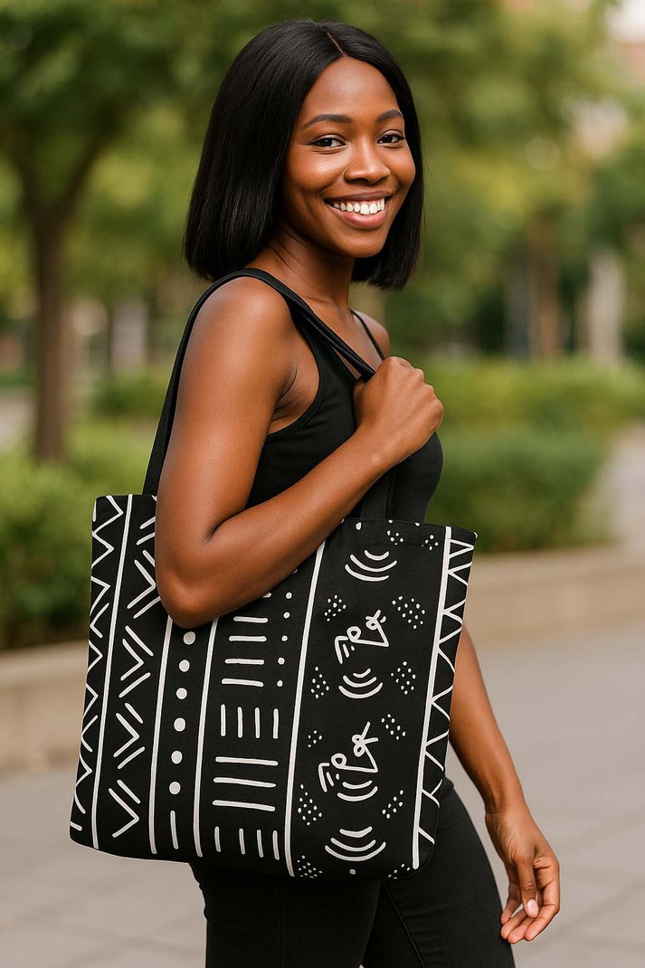 Unleash your adventurous spirit with our Mud Cloth Print Bohemian Beach Bag Tote! Made with traditional African fashion in mind, this tote offers a large capacity to hold all your beach essentials. Show off your bold style and stand out on your next beach trip! Product Description • 510 g/m2. Made from high-grade canvas. • Durable and roomy enough for your daily items. • Lightweight canvas tote bag with sturdy handle is easy to carry. • Perfect for shopping and carrying your essentials. Delivery Time This item will be processed within 3-7 business days (Excluding Weekends and Holidays). Once products ships it can take up to 15 Business days depending on your location. Out of Stock items can be requested by emailing us at [email protected] Care Instructions Machine wash cold inside out. Gentle cycle with mild detergent and like colors. Do not use bleach or fabric softener. Do not tumble dry. Hang to dry to ensure maximum shelf life. Iron inside out if necessary. Do not iron the print. Do not dry clean.