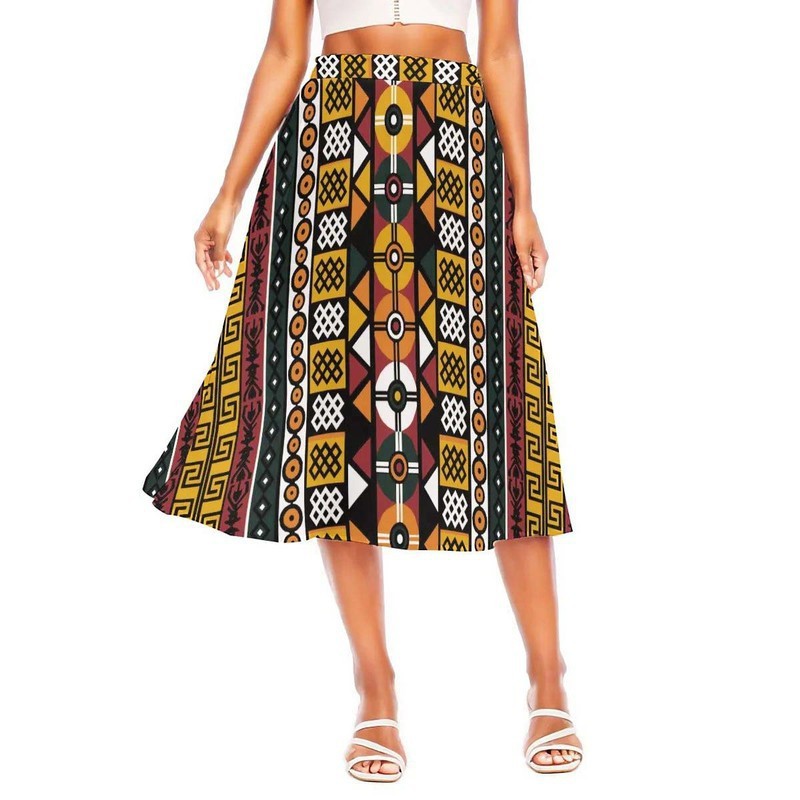 Take bold fashion risks with our Mudcloth African Print Skirt! This midi length flared style boasts an eye-catching African print design that will make you stand out in a crowd. Made with authentic mudcloth fabric, this skirt adds a touch of adventure and individuality to any outfit. Product Features Please Compare your Measurements To our Size Chart before purchase Fabric: 100% polyester * Regular fit * Waist elastic band * Fabric weight: 80g/m² Delivery Time This item will be processed within 3-7 business days (Excluding Weekends and Holidays). Once products ships it can take up to 15 Business days depending on your location. Out of Stock items can be requested by emailing us at [email protected] Care Instructions Machine wash cold inside out. Gentle cycle with mild detergent and like colors. Do not use bleach or fabric softener. Do not tumble dry. Hang to dry to ensure maximum shelf life. Iron inside out if necessary. Do not iron the print. Do not dry clean.