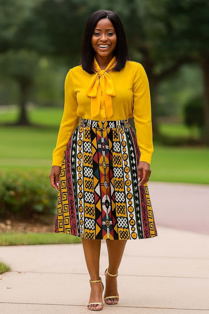 Take bold fashion risks with our Mudcloth African Print Skirt! This midi length flared style boasts an eye-catching African print design that will make you stand out in a crowd. Made with authentic mudcloth fabric, this skirt adds a touch of adventure and individuality to any outfit.