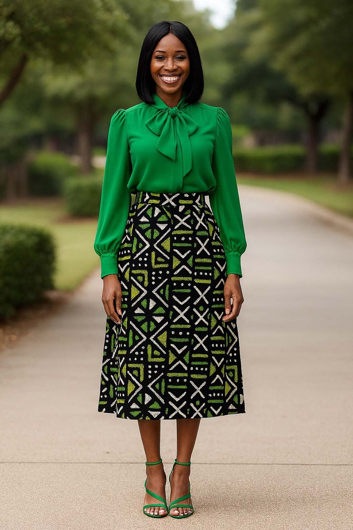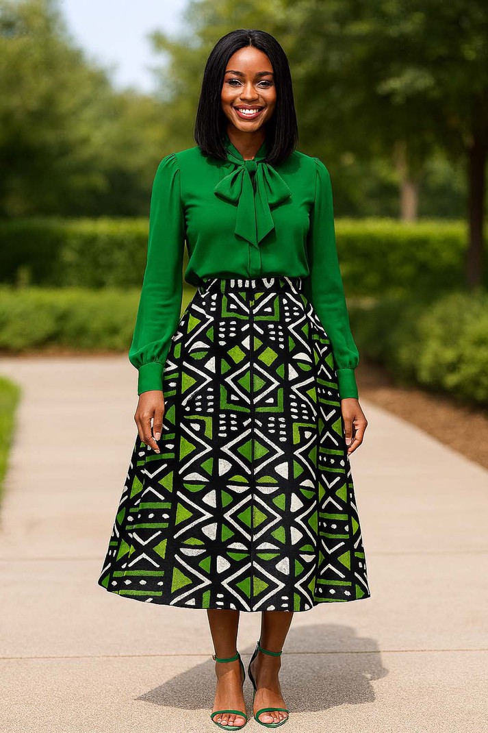 Make a bold statement with our Mudcloth Print African Midi Skirt. Embrace the adventurous spirit of tribal fashion and stand out from the crowd. With its unique print and midi length, this skirt is the perfect addition to your wardrobe. Dare to be different and show off your risky fashion sense!