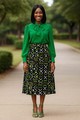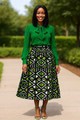 Women Skirts Midi skirts name_en: Flared name_en: Green name_en: For Her name_en: Cotton name_en: Polyester