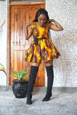 Our Mutune dress is a beautiful mini dress that is cut from a vibrant yellow and green Ankara. It comes with a black side belt detail that makes it stand out. *Has pockets * Has a side belt *Has back zipper