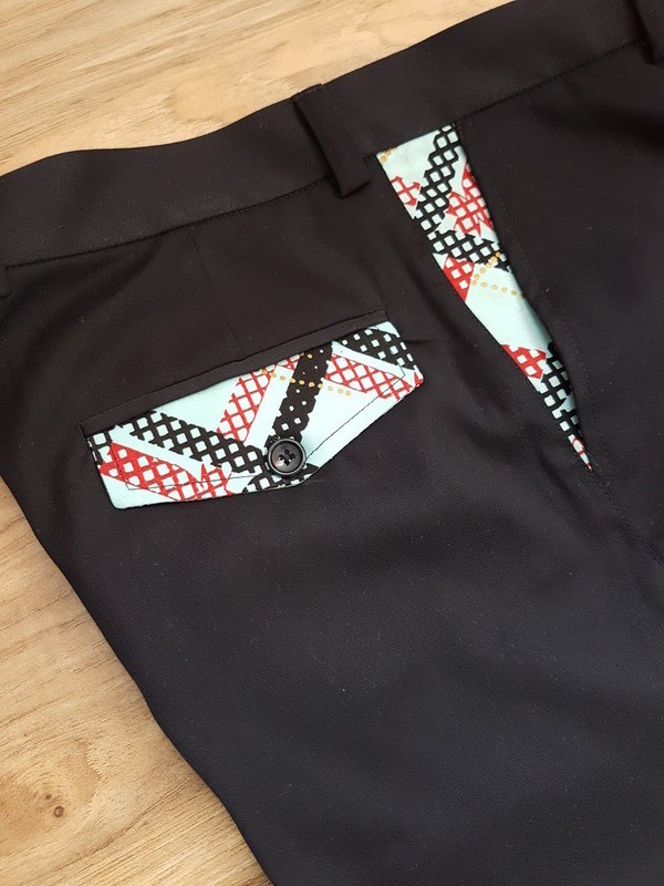 Matière principale Coton et touches de Wax : poches intérieures sur le côté, poches arrières et ourlet.