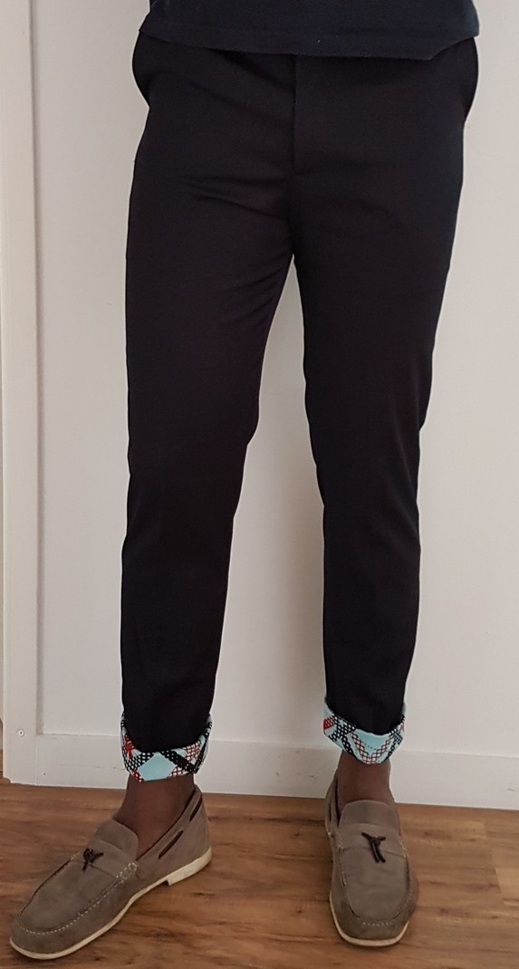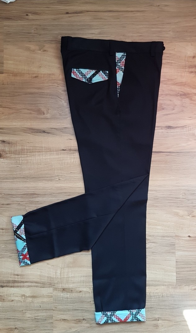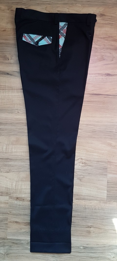 Basic navy pants, chino style with slim fit. Main material Cotton and Wax buttons: inside pockets on the side, back pockets and hem. Size matching for trousers: S 38 M 40 L 42 XL 44 2XL 46 3XL 48 4XL 50