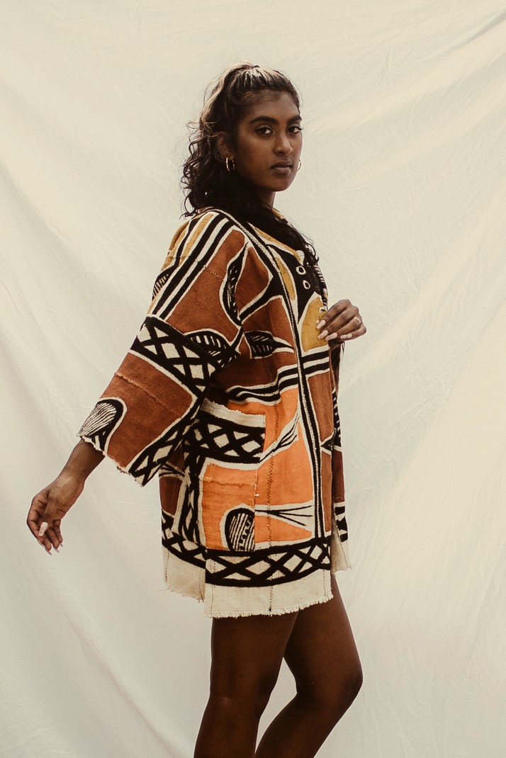 This piece was made using Korhogo cloth, fabric made by the Senufo people of Korhogo, Ivory Coast and is one in a collection of sustainably sourced progressive pieces, handmade in Ghana by Ghanaian artisans, specially for you.