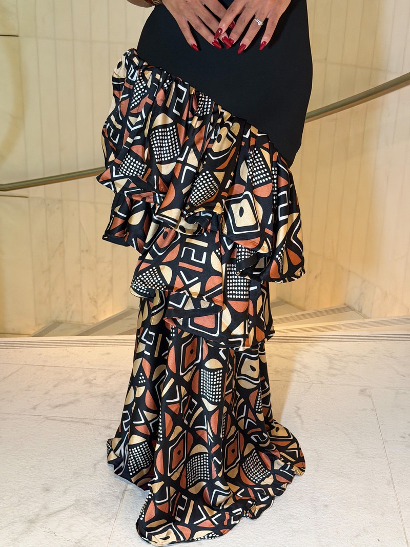 The Nyota Dress, which means "star" in Swahili, embodies both glamour and lightness. Its long and tight cut delicately hugs the shapes, while its frous-frous at the bottom bring a fluid and airy movement to each of your steps. This dress is perfect for summer days or elegant evenings, offering a soft touch and a bright fall.