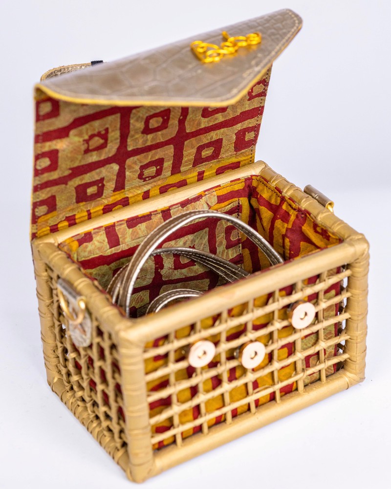 Bags Shoulder bags name_en: Gold name_en: Leather name_en: Rattan