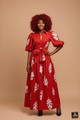 Command attention in this red printed maxi shirt dress, designed with puff sleeves, a collared neckline, and a matching waist belt for a flattering silhouette. The bold leaf motifs add a touch of African artistry, while the button-down front allows styling versatility.