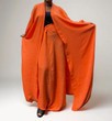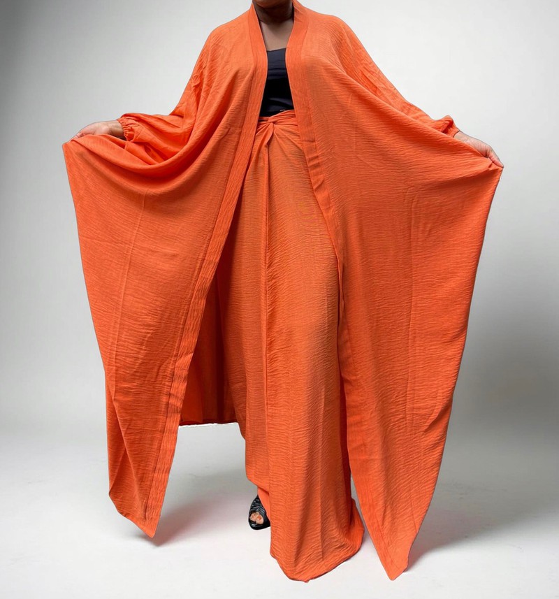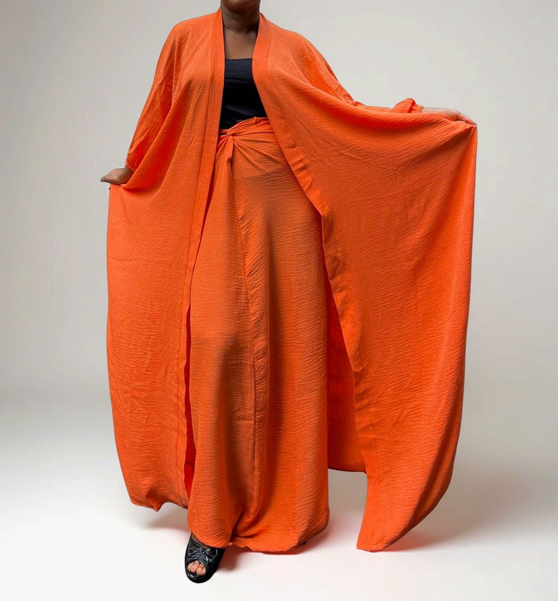 Orange Oversized crepe Maxi Cardigan top and wrap Skirt set