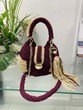 • Tassel: An elegant tassel made from strings of beads hangs on one side, contributing to the bag’s overall elegance and providing a sense of movement.
