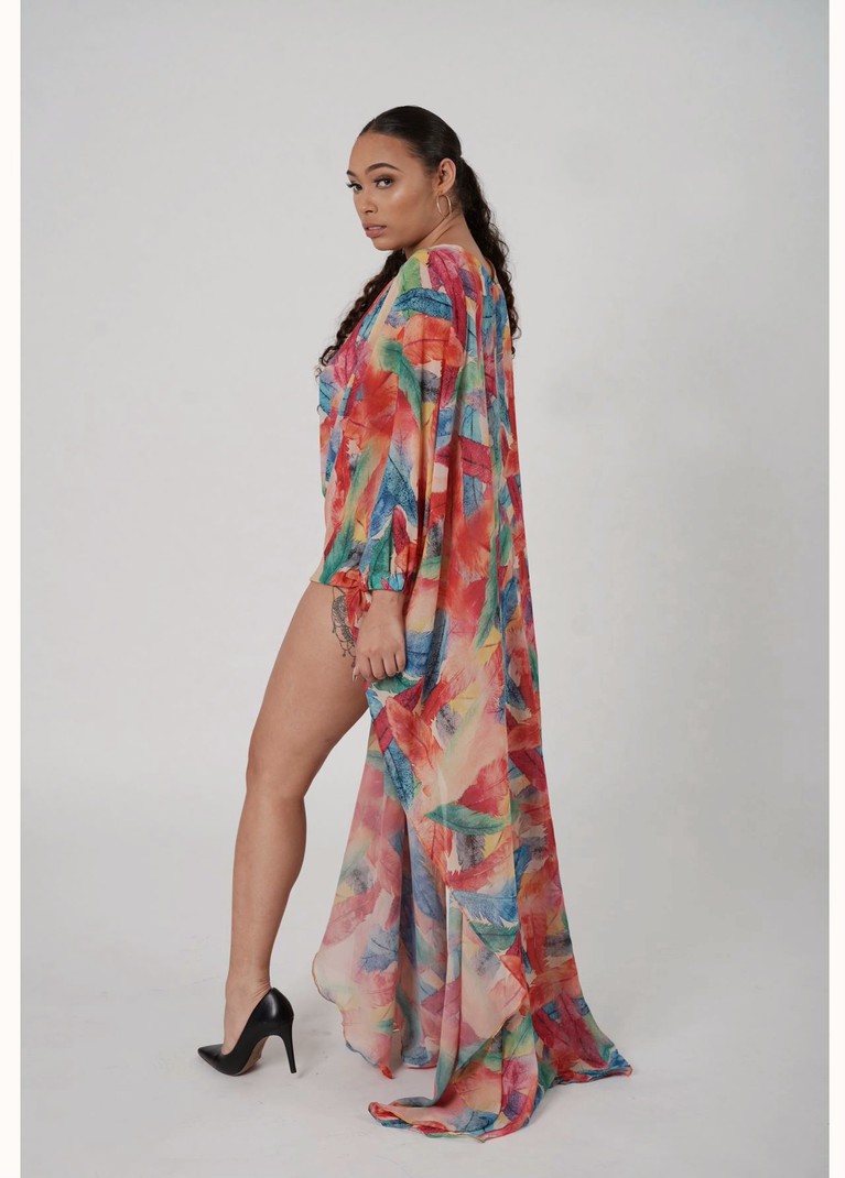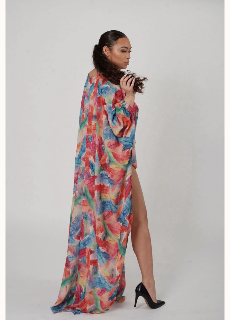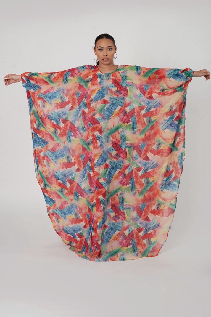 Oversized Multicolor Chiffon Sheer Maxi Kaftan Dress