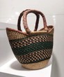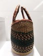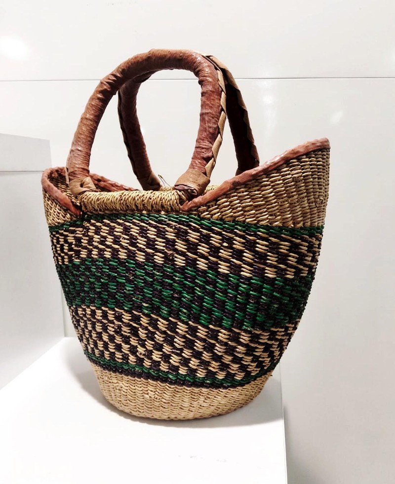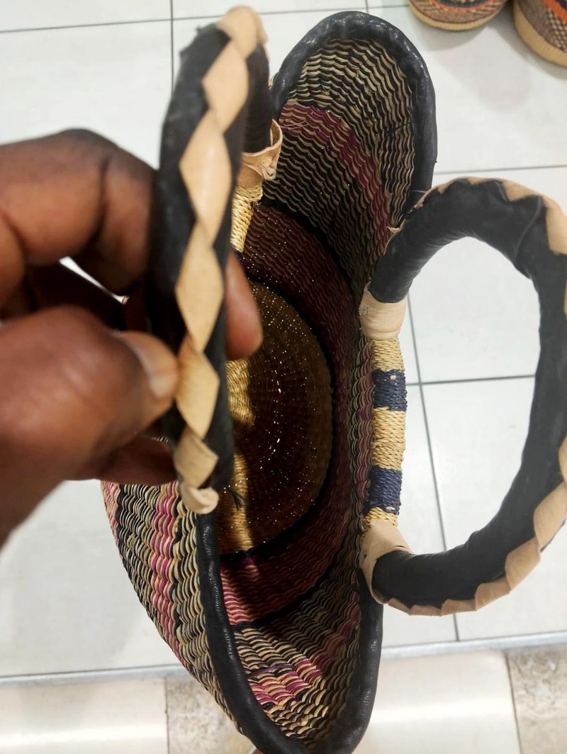 Beau panier en paille tissé avec anses en cuir fabriqué artisanalement au burkina Faso .