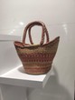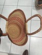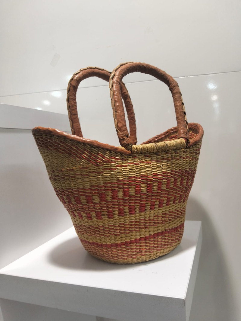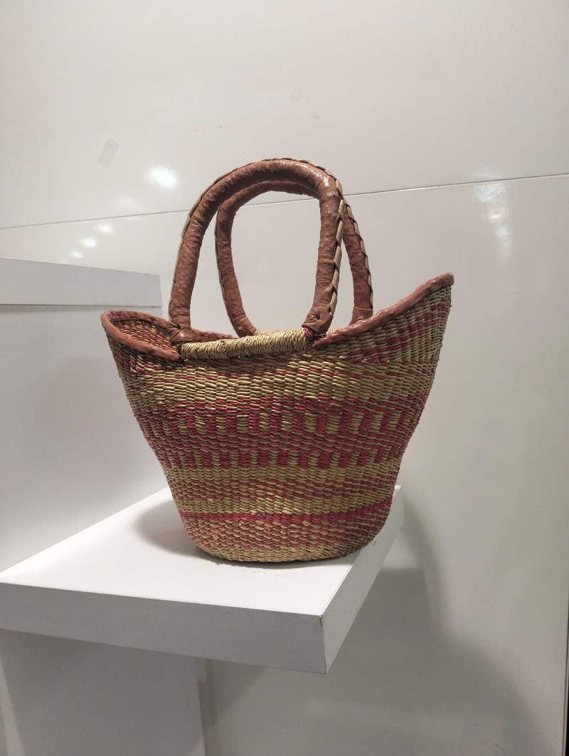 Beau panier en paille tissé avec anses en cuir fabriqué artisanalement au burkina Faso .
