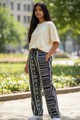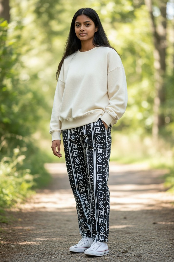 Avec sa coupe droite intemporelle et son imprimé graphique puissant, ce pantalon sublimera toutes les silhouettes.son motif, à la fois symbolique et tendance, attire le regard tout en restant raffiné. Facile à associer, il se porte aussi bien avec un haut uni qu’avec une veste structurée pour un style urbain chic