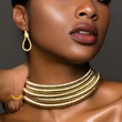 Ce somptueux collier ras-de-cou, orné de multiples cordons dorés, puise son essence dans la richesse des traditions africaines. Inspiré des parures royales africaines portées par les reines, les guerrières et les femmes de pouvoir, il symbolise la force, la beauté et la noblesse.
