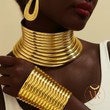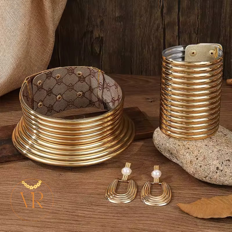 Inspiré des bijoux royaux africains, cet ensemble doré capture la force et la beauté des reines d’antan.