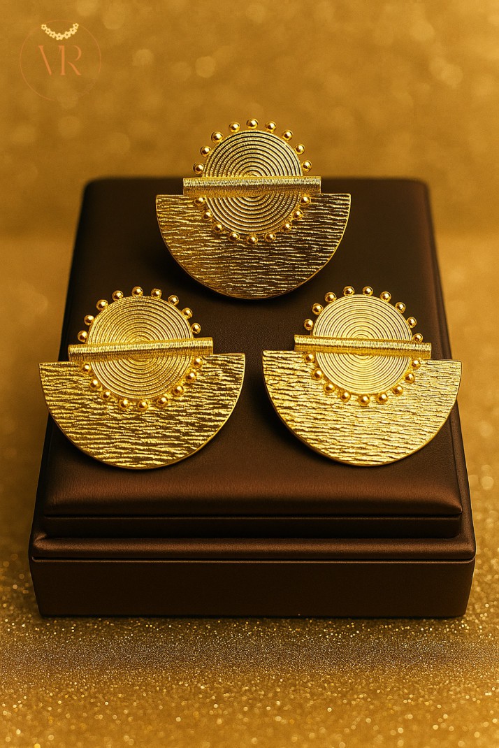 L'ensemble « Soleil Royal » réunit deux pièces d'exception : une paire de boucles d'oreilles demi-lune texturées et une bague assortie, toutes deux inspirées du soleil, symbole de lumière, de force et d'élégance. Les motifs circulaires en spirale, combinés à la texture martelée et aux reliefs délicats, créent un rendu artistique, lumineux et raffiné. Un ensemble remarquable qui tient le regard et sublime instantanément votre style. ⸻ ✦ Détails du produit Inclus dans le set : • 1 paire de boucles d'oreilles • 1 bague assortie (taille ajustable) Caractéristiques : • Matériau : Cuivre doré • Finition : or brillant + texture martelée • Bague : ajustable – convient à toutes les tailles • Boucles d'oreilles : fermoir tige classique • Hypoallergéniques (sans nickel) • Confortables et légères ⸻ ✦ Points forts • Set complet : boucles + bague assortie • Design solaire unique et haut de gamme • Texture travaillée qui capte magnifiquement la lumière • Bague ajustable – parfait pour offrir • Élégant, moderne et très tendance • Pièces signature VeoraShopStore 🌟